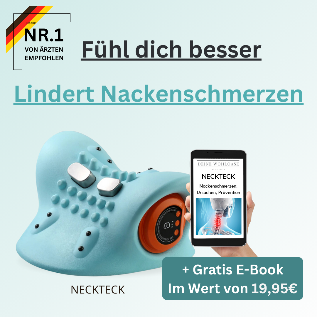 Hast du mit Nacken- oder Kiefergelenkschmerzen sowie Spannungskopfschmerzen zu kämpfen? Mit dem NeckTeck kannst du diese Beschwerden gezielt lindern – nur 10 Minuten täglich reichen aus. Zufrieden oder Geld zurück!